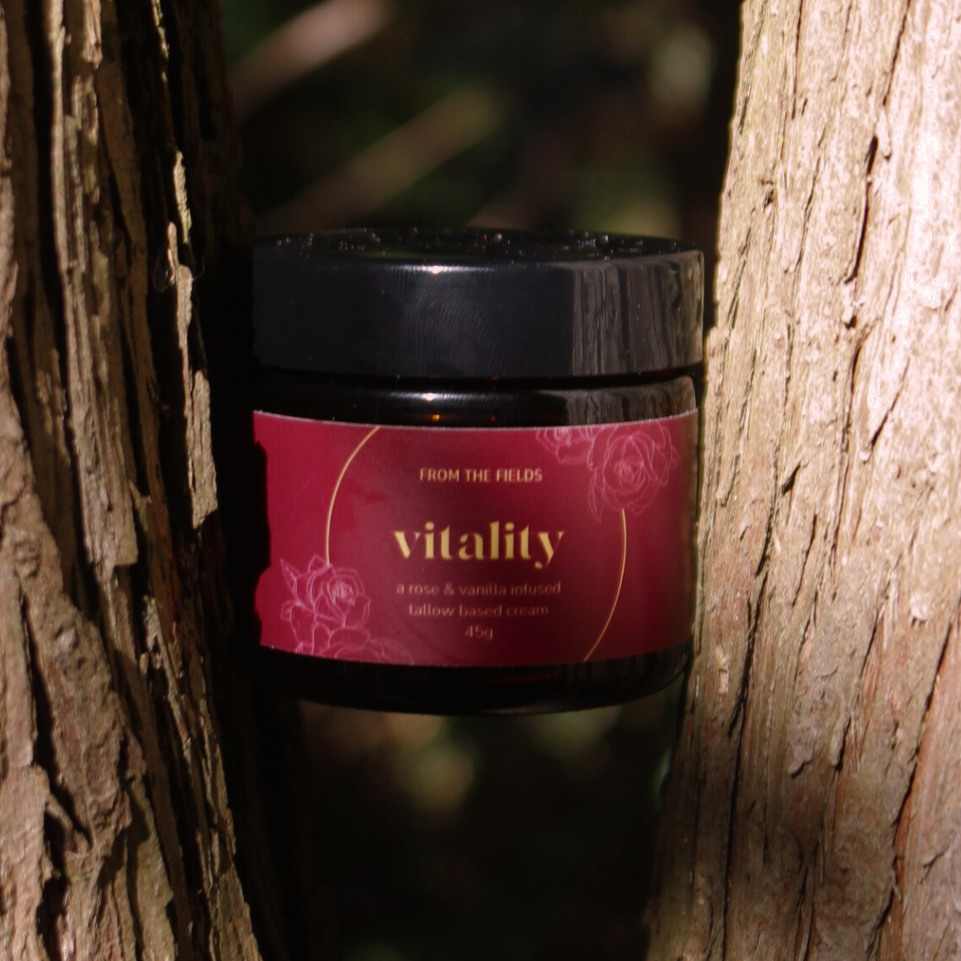 At From The Fields we prioritise long slow infusions to preserve the benefits of all ingredients. Our tallow is grass fed and finished, rendered slowly at a low temperature. The tallow is then mixed with Rose Petals and Plantain which are cold infused by the power of the sun over a period of at least 6 weeks into Wadi Wadi Jojoba oil. The mixture is finished with a finishing touch of Far North Queensland Vanilla Beans infused for a minimum of 8 hours.